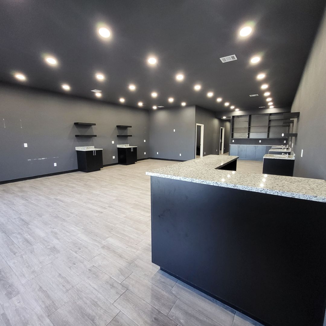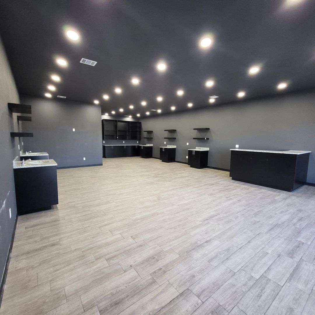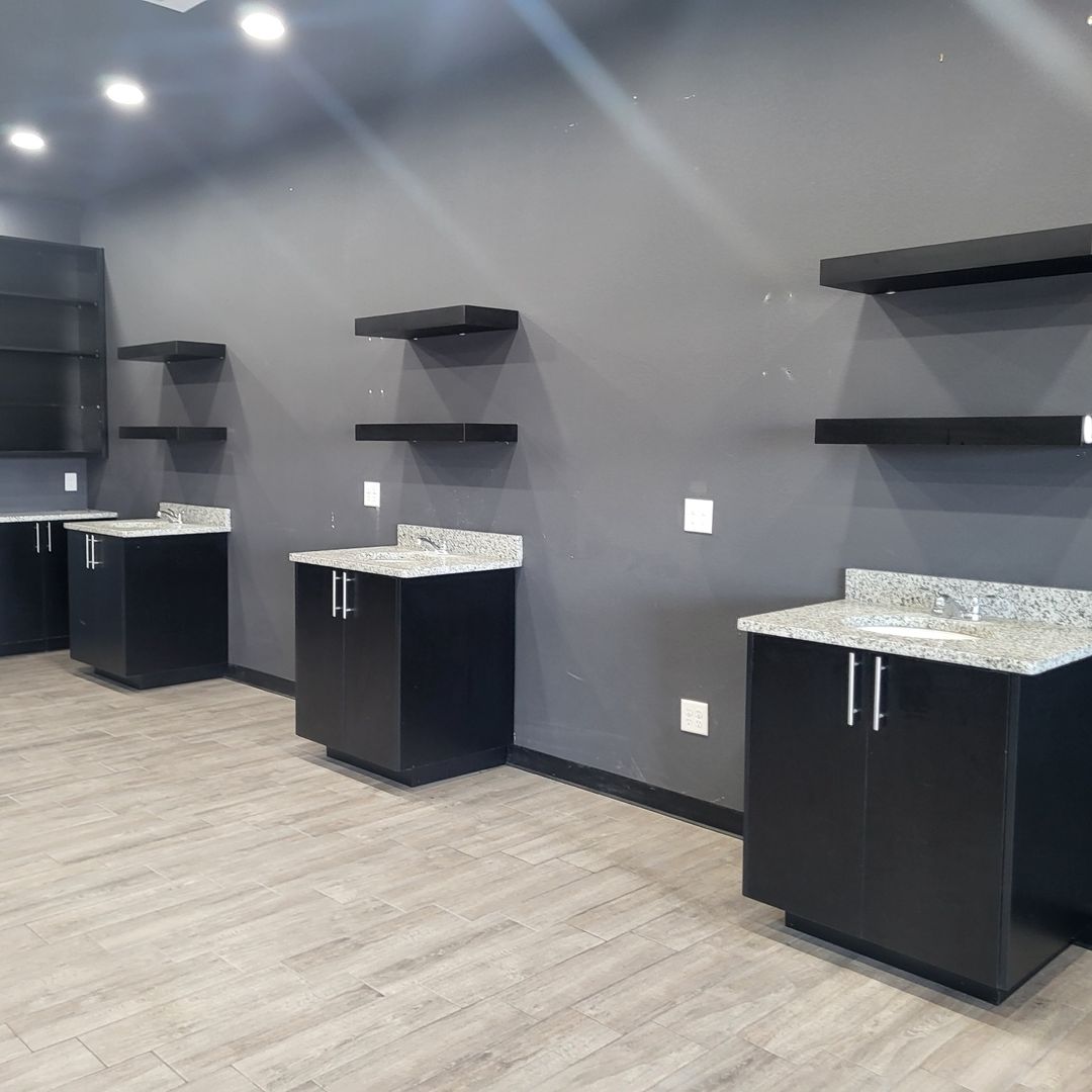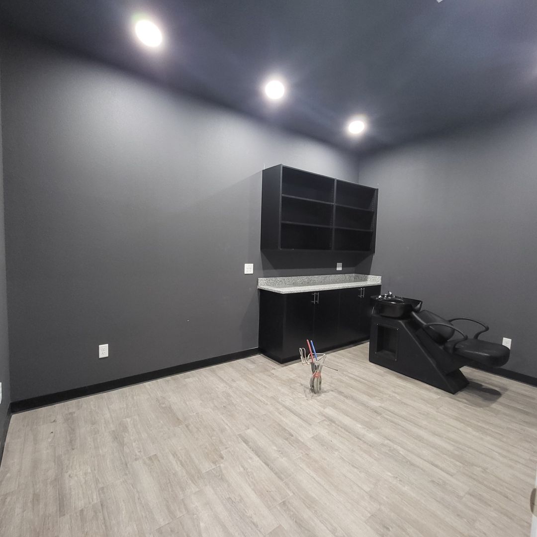 This 1500 Square feet space is ready for a barbershop or hair salon! Features 6 sink stations, large open area/lobby/reception area and lots of built-ins. Space has a small kitchenette, utility room with washer/dryer hookups, handicap accessible bathroom, tile floors, LED lighting, and spacious parking lot! Three year lease minimum. No nail salons allowed due to neighboring business.