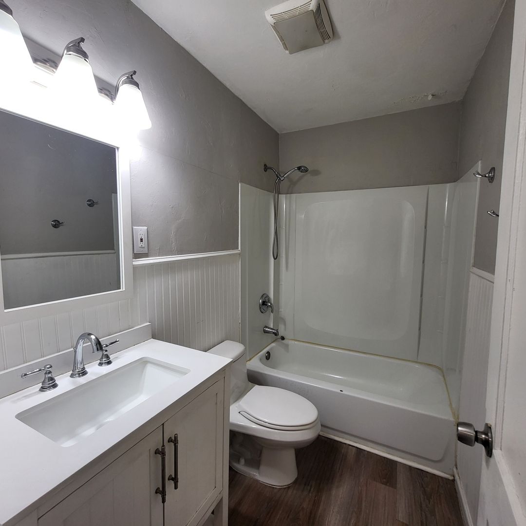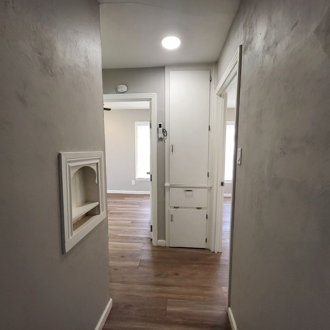 Nice 2 bedroom duplex with 1 remodeled bath for lease now available! Features solid surface flooring, large mini-split for heating & AC, nice galley style kitchen (stove & fridge provided), washer/dryer, and private back yard. Easy online application.